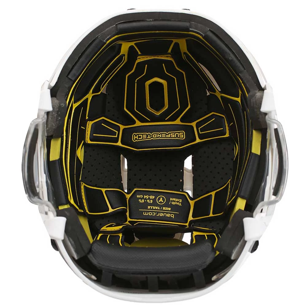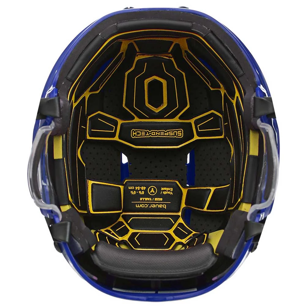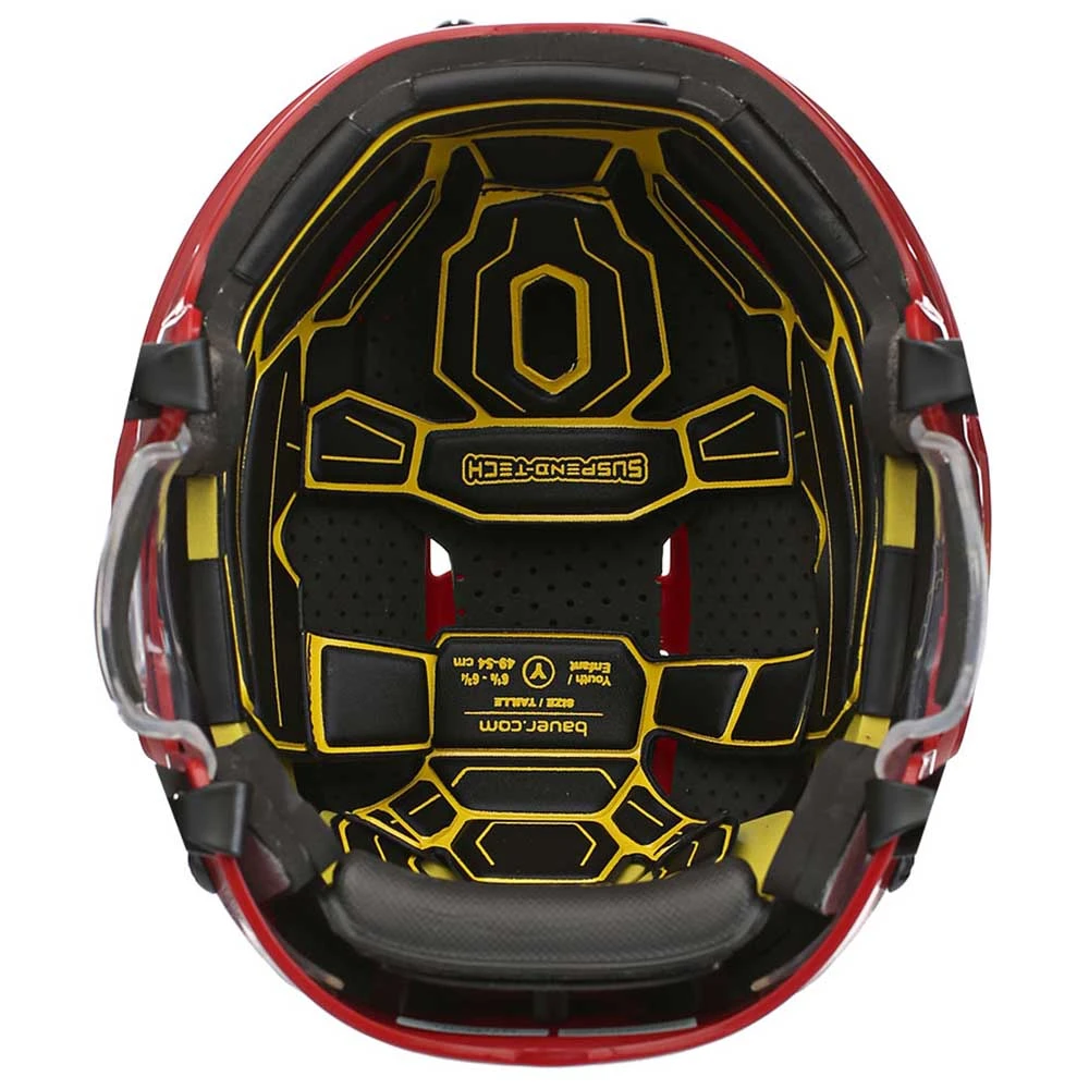 The Bauer Re-Akt 100 Youth Hockey Helmet Combo is built with a SUSPEND-TECH liner system, PORON® XRD™ foam, triple-density impact management protection with dual density ear cover, and attached with Re-Akt facemask protection.